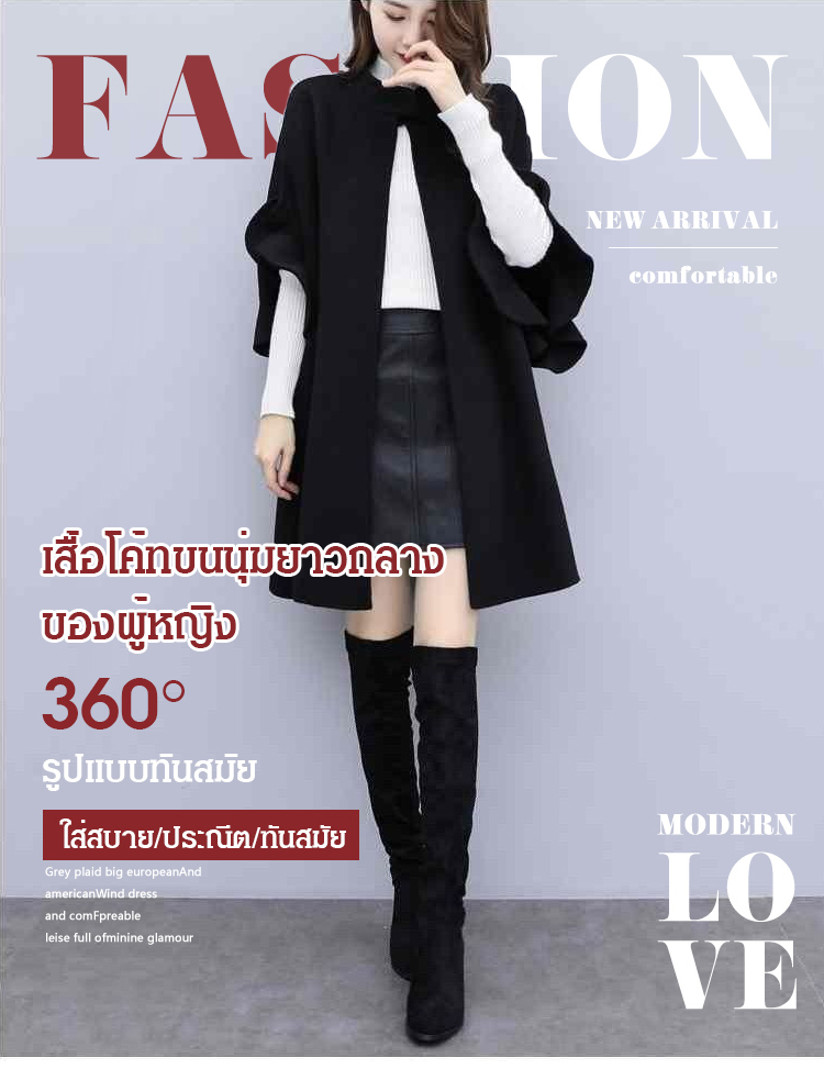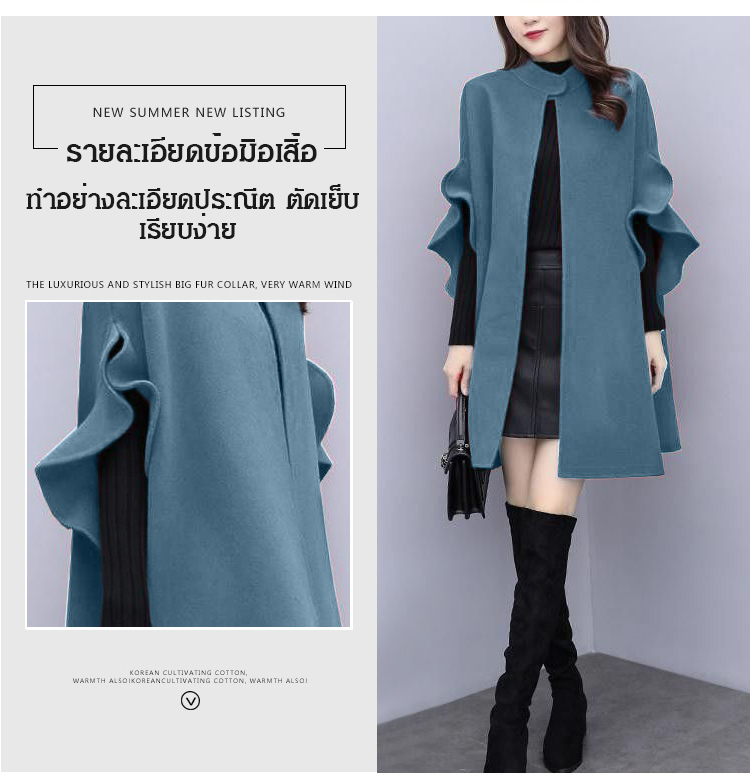 【เสื้อคลุมไหมพรมเกาหลี】ผ้าวูล 2 ด้าน 100% ทำจากขนสัตว์นำเข้าจากอิตาลี ละเอียดอ่อน กว่าผ้าแคชเมียร์ธรรมดา มีรูปทรงรูปตัว A ทันสมัย ดูผอม ทำด้วยมือ ใส่สบาย ทนทาน ไม่เสียทรง