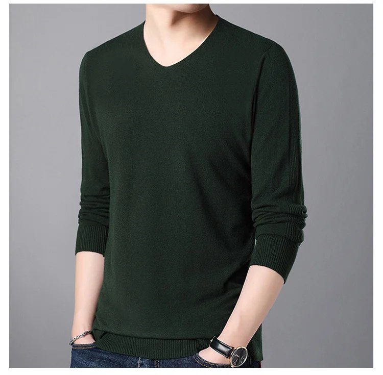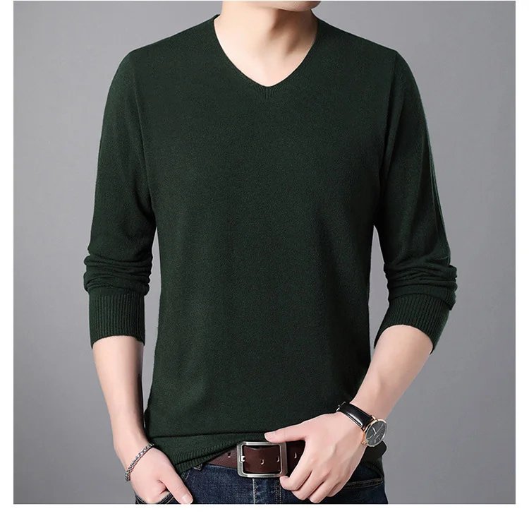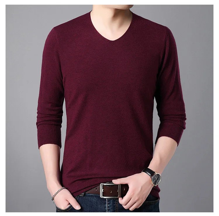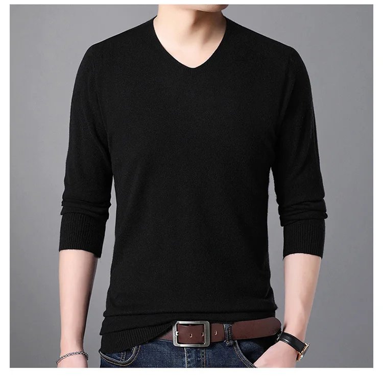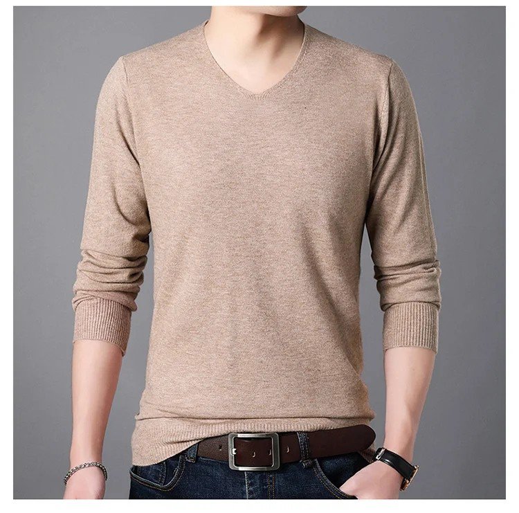 เสื้อสเวตเตอร์แคชเมียร์คอวีสีทึบของผู้ชาย