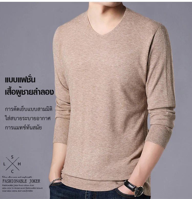 เสื้อถักคอวีผู้ชาย